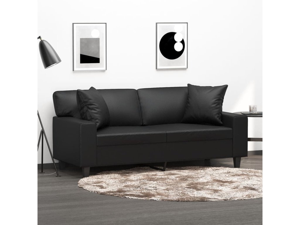 vidaXL 2-miestna pohovka s vankúšmi čierna 140 cm umelá koža