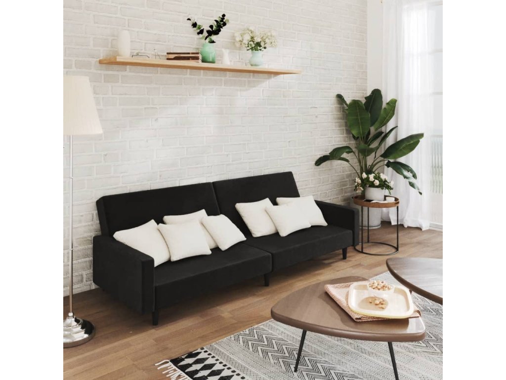 vidaXL 2-miestna rozkladacia pohovka, čierna, zamat