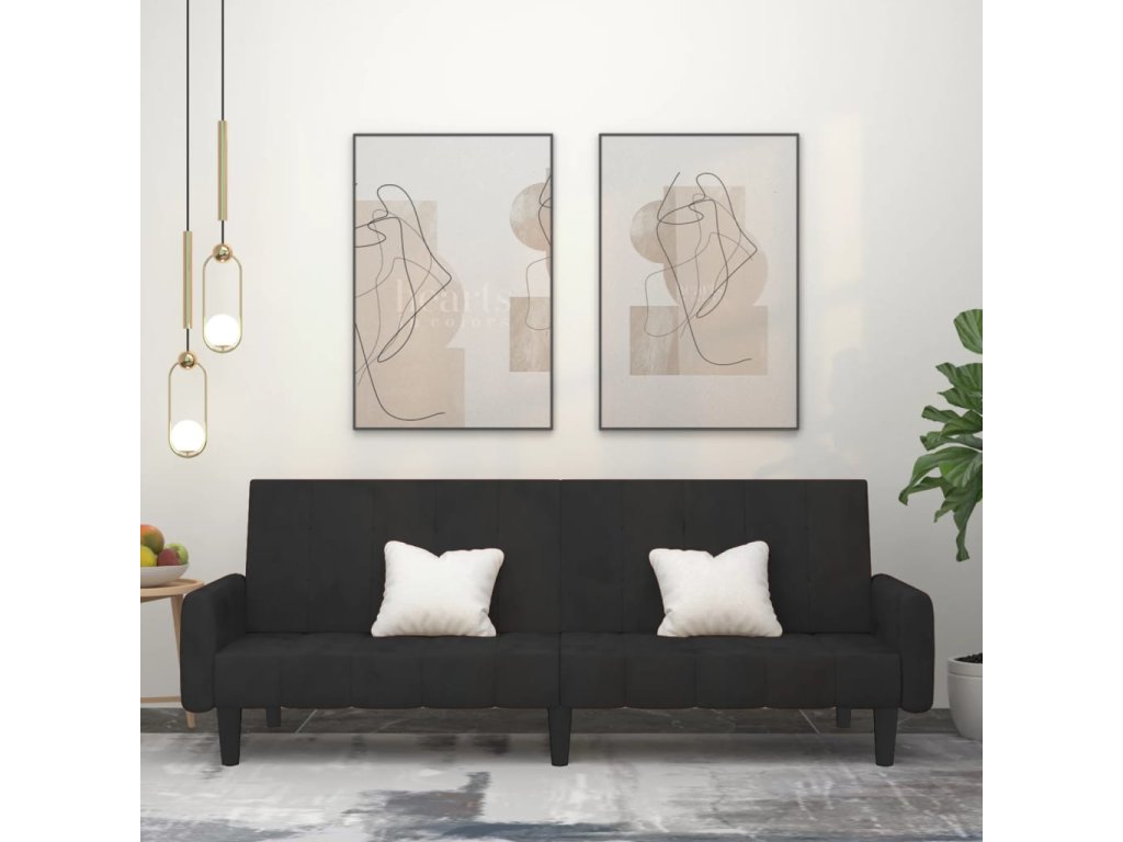 vidaXL 2-miestna rozkladacia pohovka, čierna, zamat