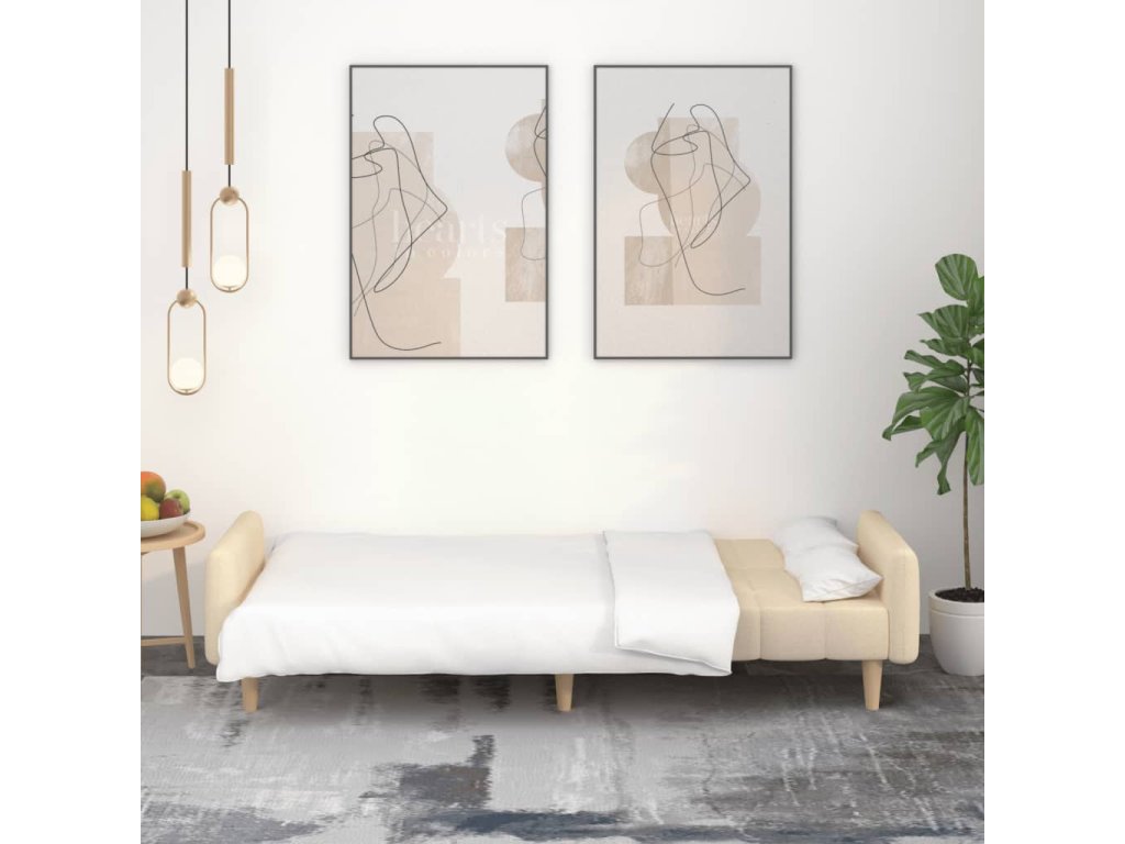vidaXL 2-miestna rozkladacia pohovka, krémová, látka