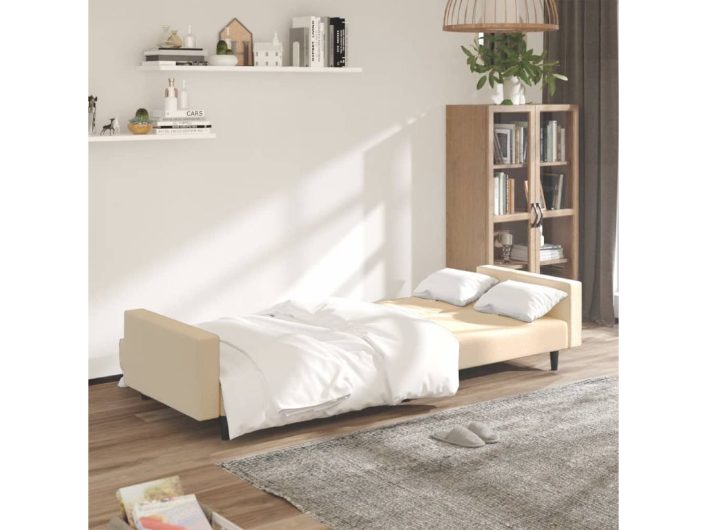 vidaXL 2-miestna rozkladacia pohovka, krémová, zamat