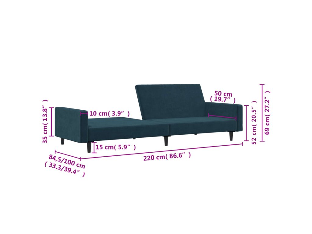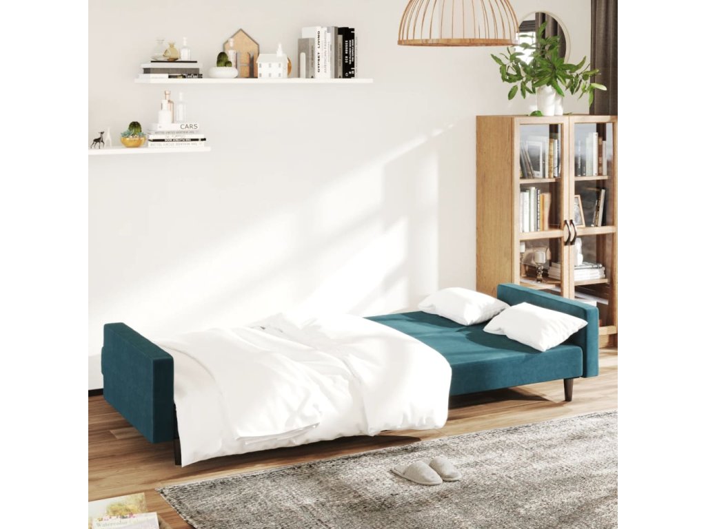 vidaXL 2-miestna rozkladacia pohovka, modrá, zamat