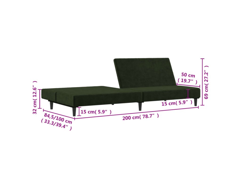 vidaXL 2-miestna rozkladacia pohovka, tmavozelená, zamat