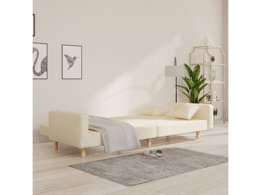 vidaXL 2-miestna rozkladacia pohovka s 2 vankúšmi, krémová, látka