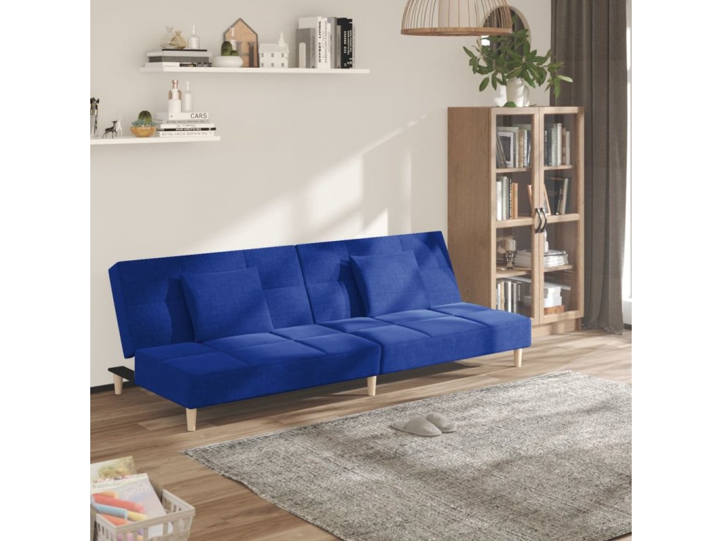 vidaXL 2-miestna rozkladacia pohovka s 2 vankúšmi, modrá, látka