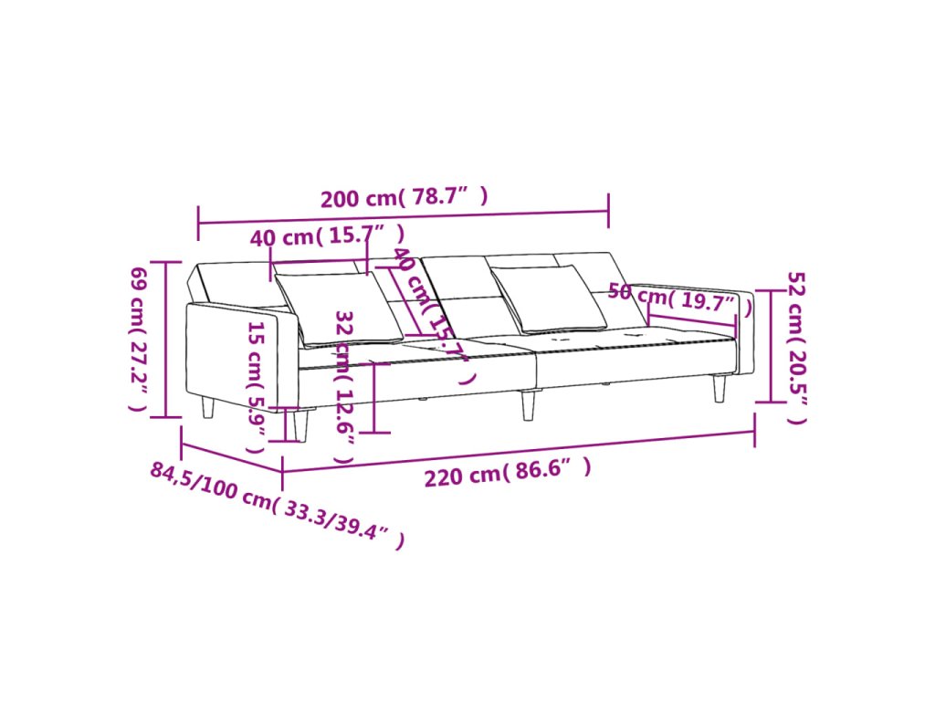 - Celkové rozmery: 220 x 84,5 x 69 cm (D x Š x V)