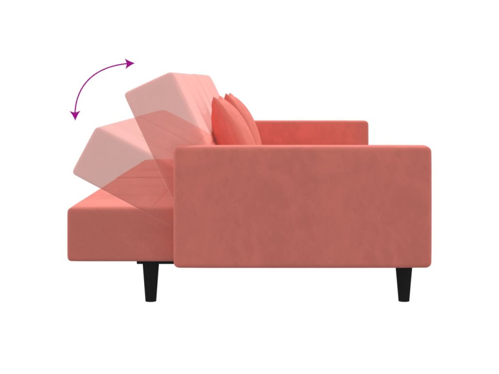 vidaXL 2-miestna rozkladacia pohovka s 2 vankúšmi, ružová, zamat