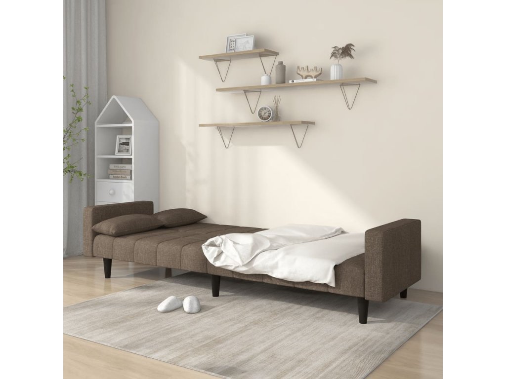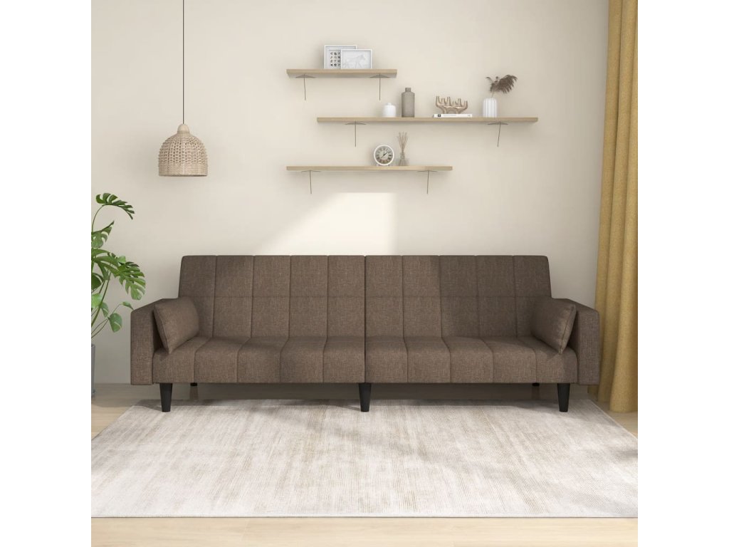 vidaXL 2-miestna rozkladacia pohovka s 2 vankúšmi, sivohnedá, látka