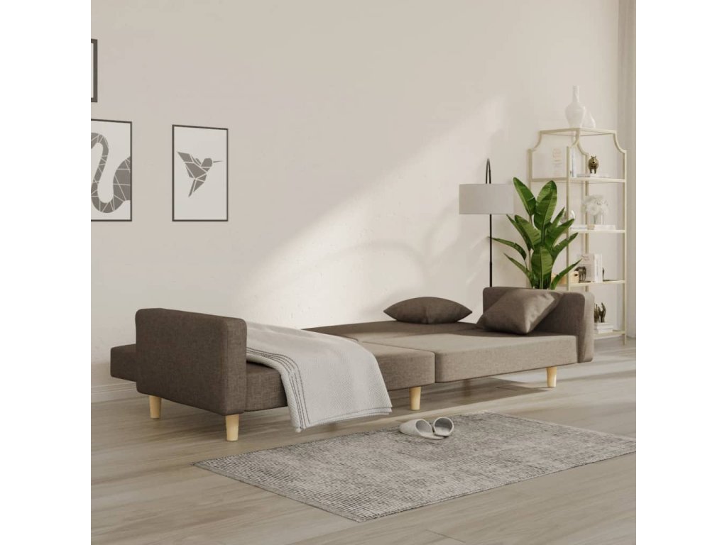 vidaXL 2-miestna rozkladacia pohovka s 2 vankúšmi, sivohnedá, látka