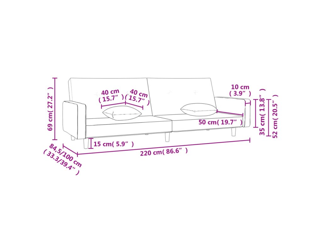 - Celkové rozmery: 220 x 84,5 x 69 cm (D x Š x V)