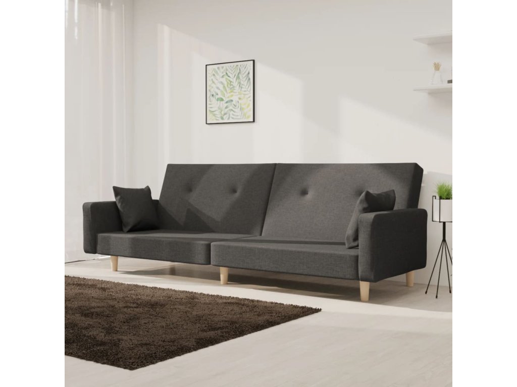 vidaXL 2-miestna rozkladacia pohovka s 2 vankúšmi, tmavosivá, látka