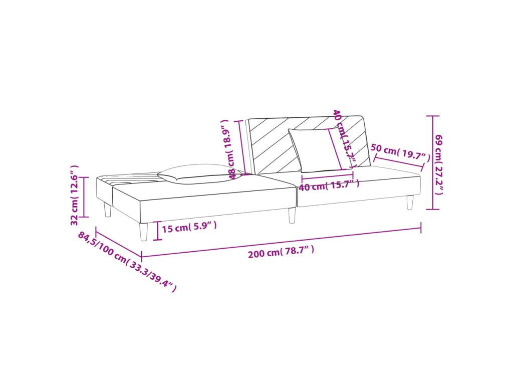 - Celkové rozmery: 200 x 84,5 x 69 cm (D x Š x V)