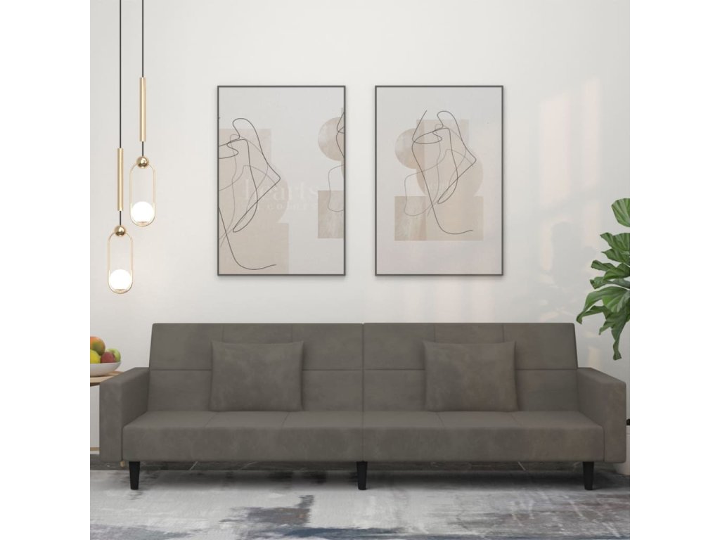 vidaXL 2-miestna rozkladacia pohovka s 2 vankúšmi, tmavosivá, zamat