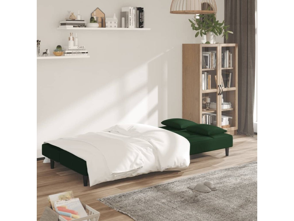 vidaXL 2-miestna rozkladacia pohovka s 2 vankúšmi, tmavozelená, zamat