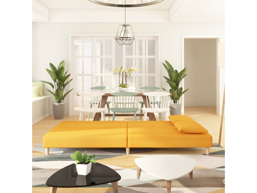 vidaXL 2-miestna rozkladacia pohovka s 2 vankúšmi, žltá, látka