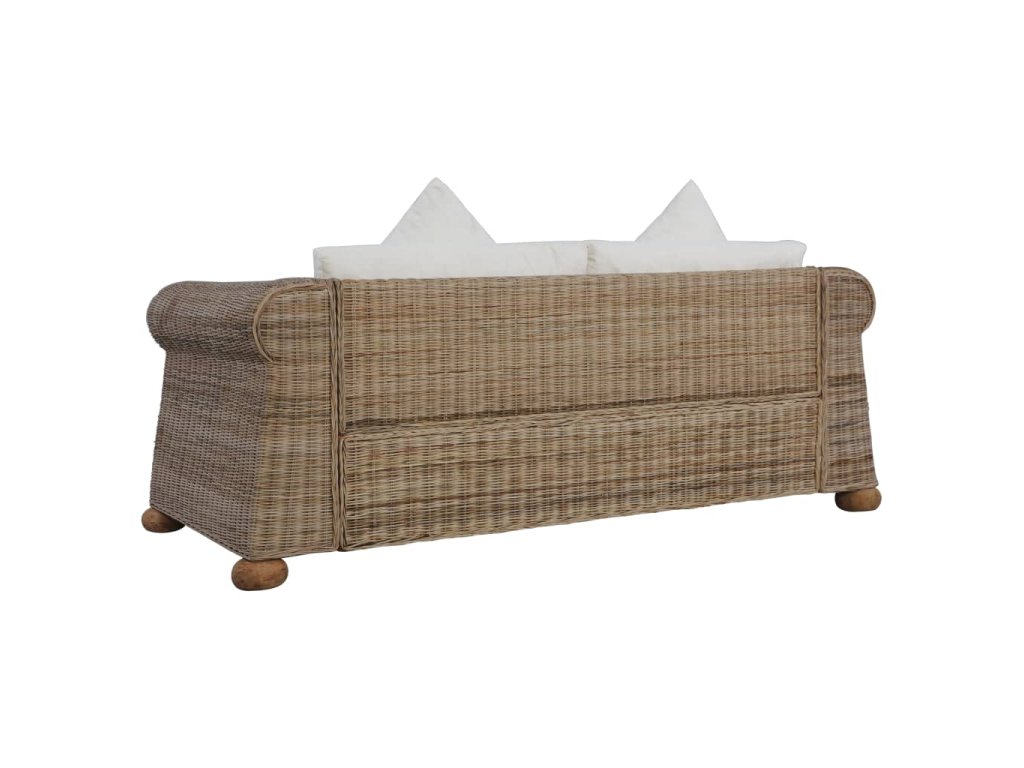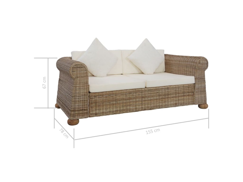 Vďaka kvalitnému výpletu z pravého ratanu sa pohovka jednoducho čistí, je odolná a vhodná na každodenné použitie. Má pevný drevený rám, ktorý je skutočne odolný a stabilný. Hrubé podsedáky a vankúše sú pohodlné a vďaka odnímateľným návliečkam sú aj umývateľné. Široké opierky zaistia, že sa na pohovke pohodlne sedí.