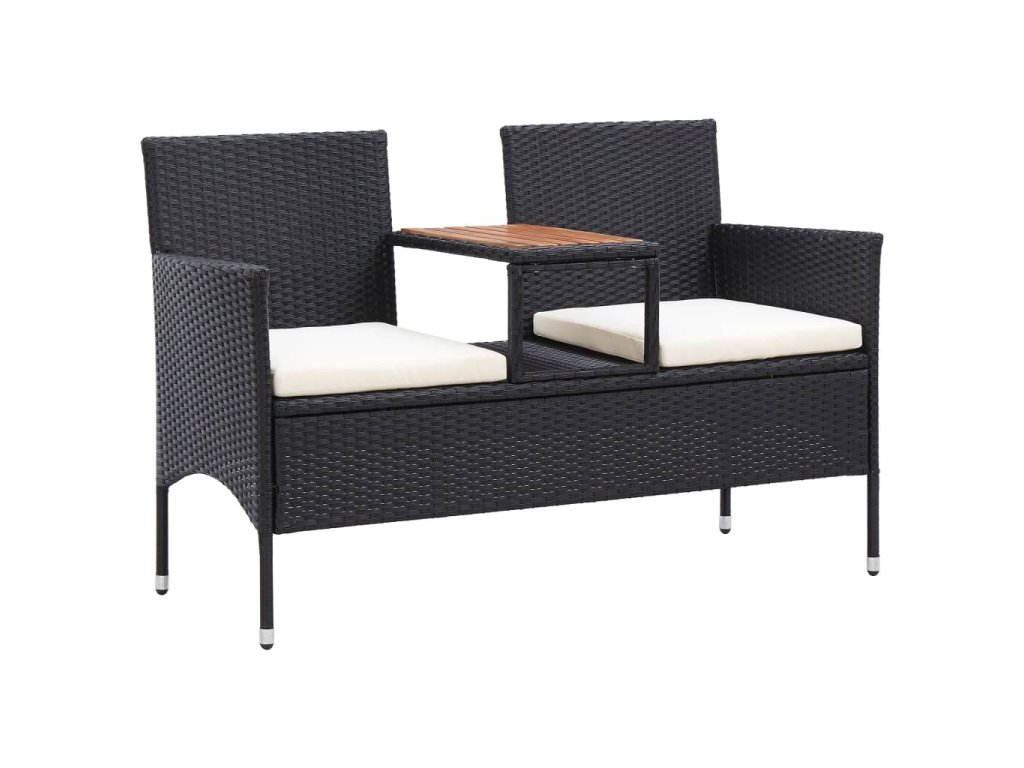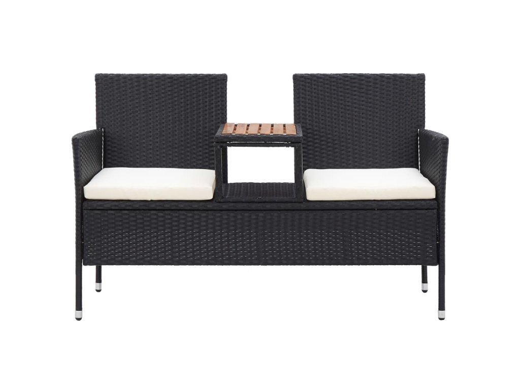 vidaXL 2-miestna záhradná lavica s čajovým stolíkom 143 cm polyratan čierna