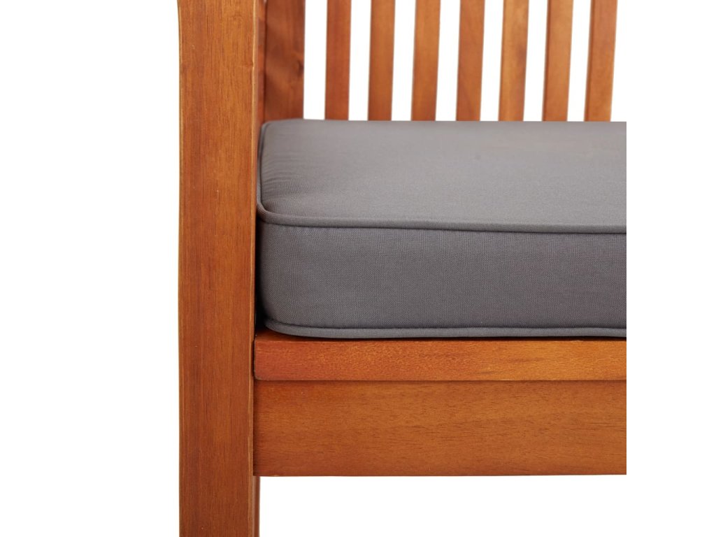 Rám z akáciového dreva s prírodnou olejovou povrchovou úpravou dodáva tradičný a prívetivý vzhľad vašim vonkajším priestorom. Lavica je odolná a vydrží dlhé roky používania. Súčasťou balenia sú pohodlné podušky pre čo najlepší odpočinok. Vodeodolné podušky sa navyše ľahko čistia. Ideálne sa hodí pre nedeľné pohodová popoludnie s knihou alebo ako dodatočné miesto na sedenie pre hostí.