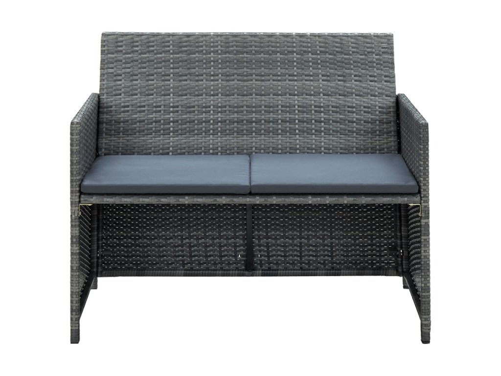 vidaXL 2-miestna záhradná pohovka s podložkami, sivá, polyratan