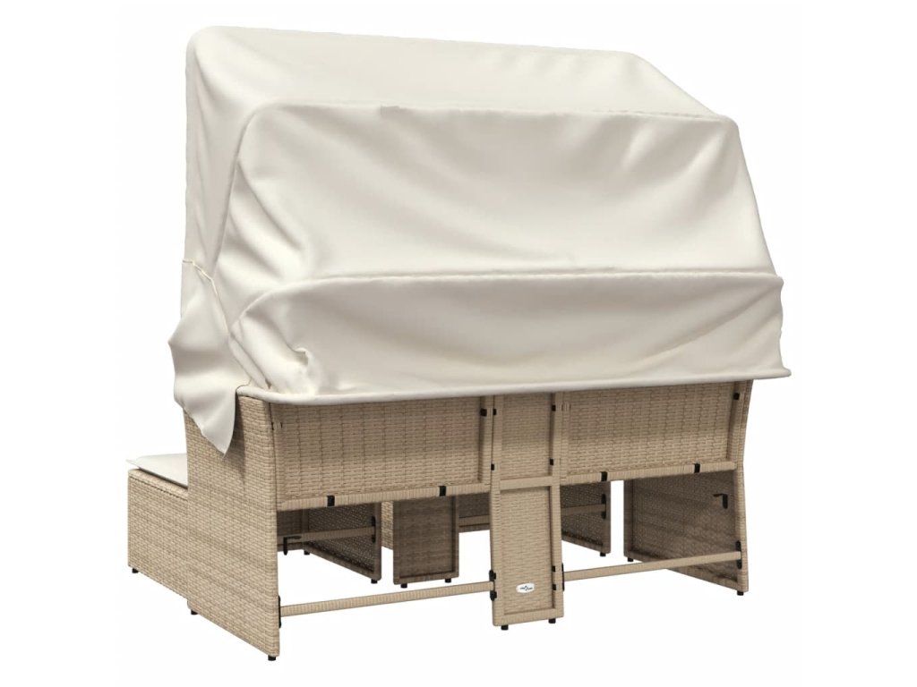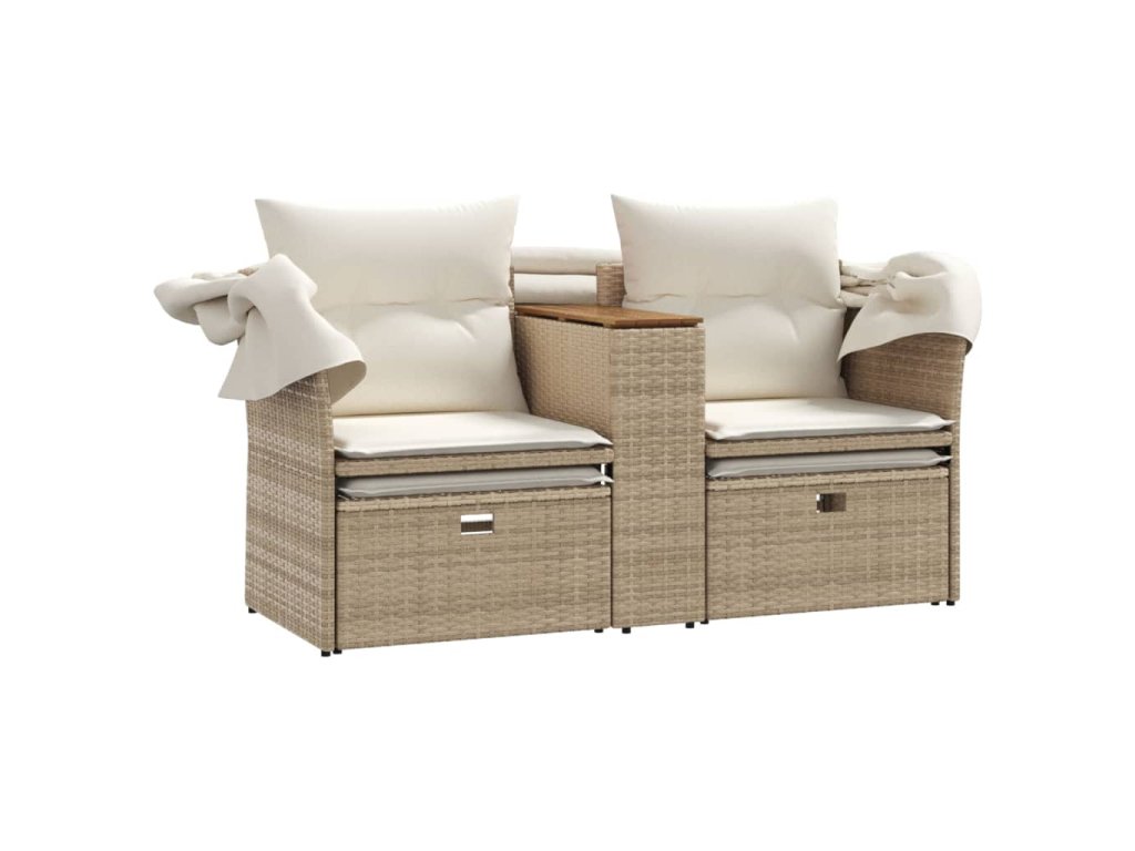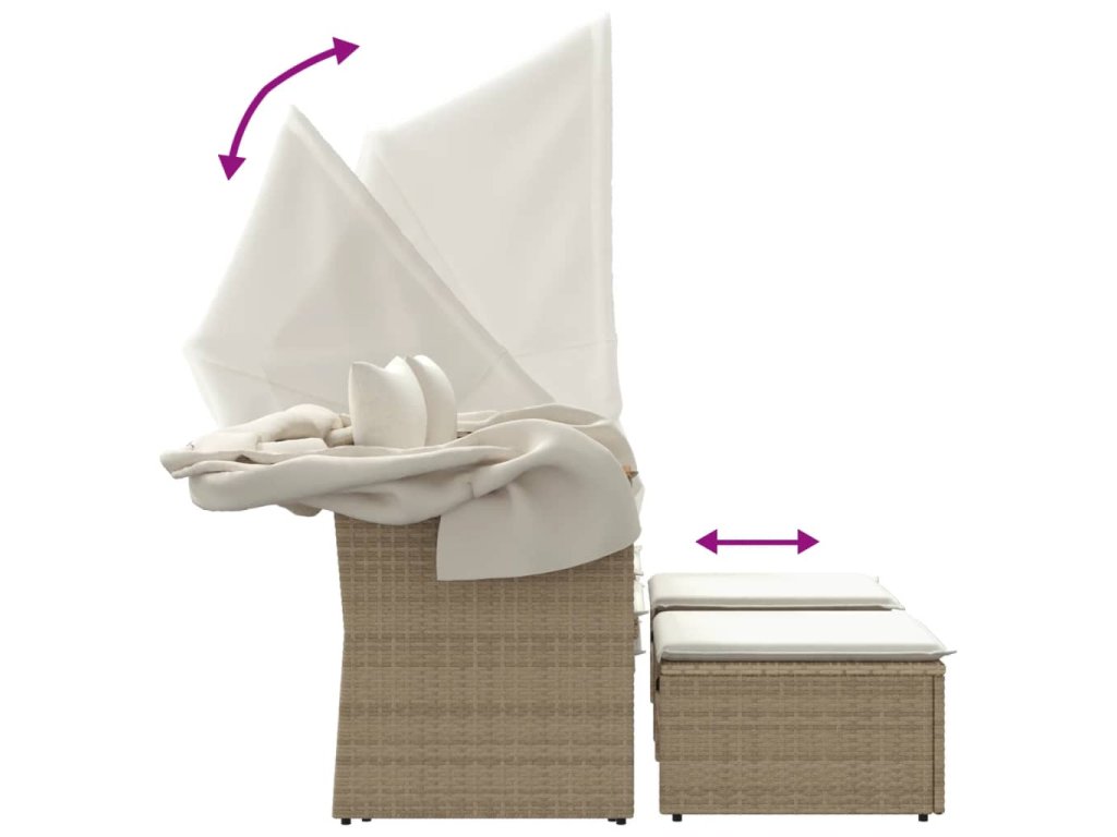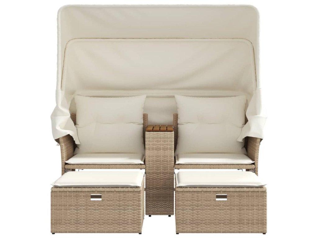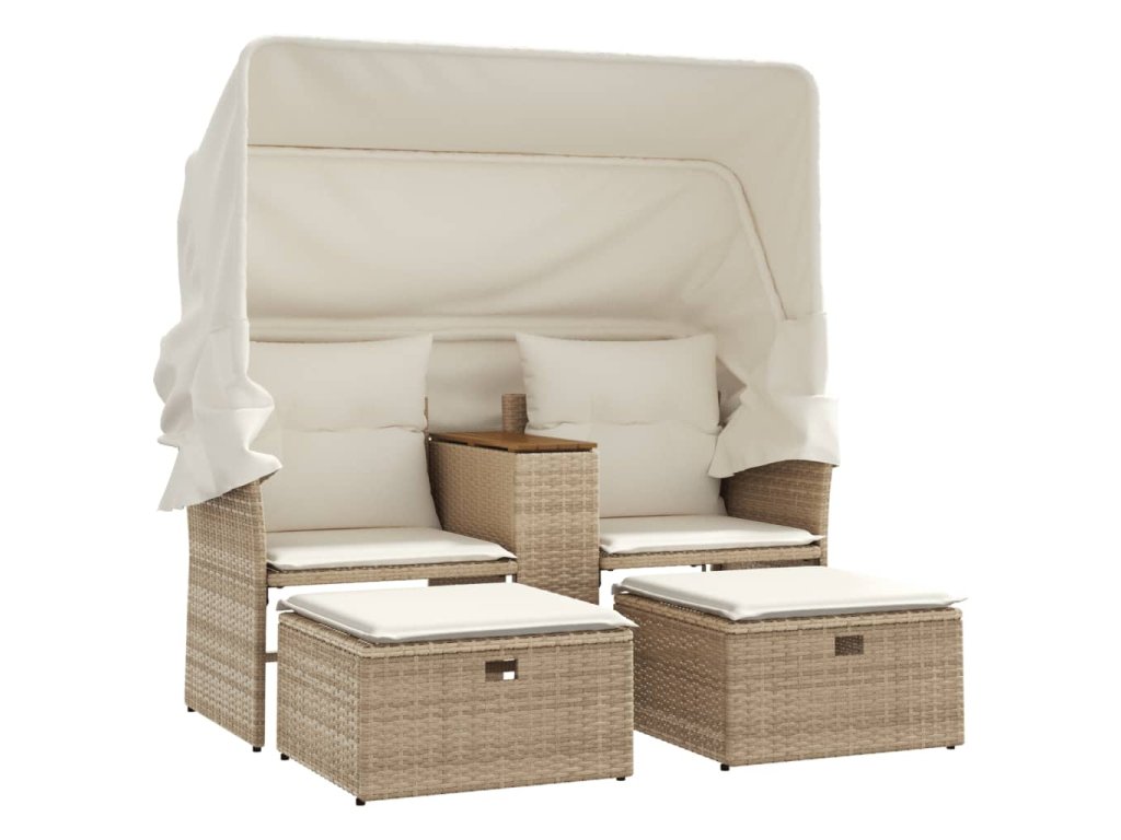 vidaXL 2-miestna záhradná pohovka+strieška, taburetky béžová polyratan