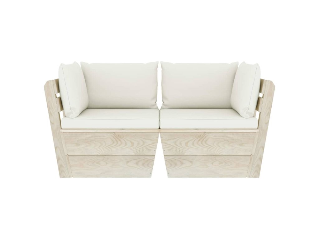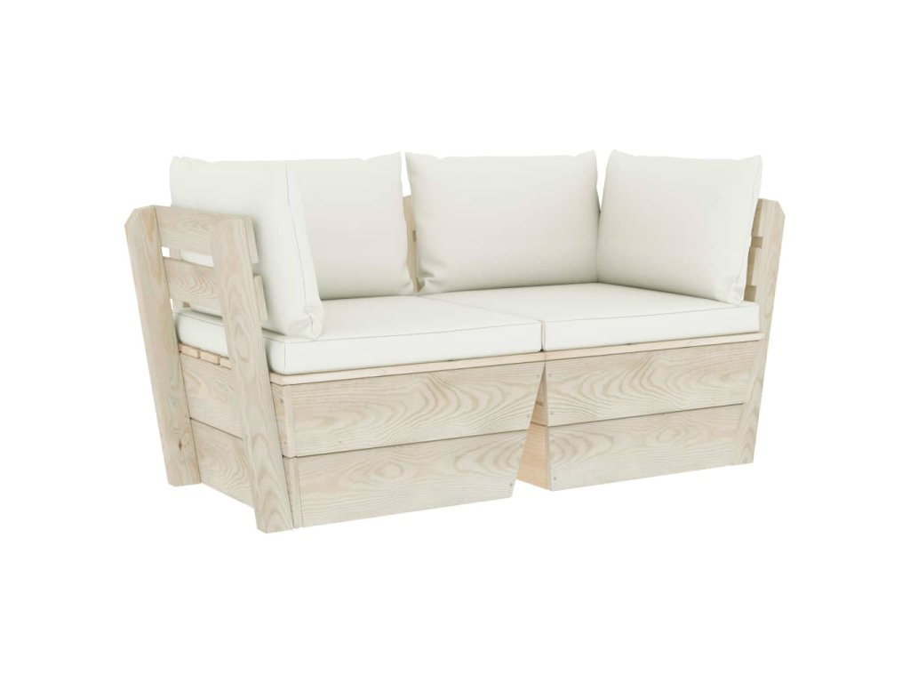 vidaXL 2-miestna záhradná pohovka z paliet+podložky, smrekové drevo