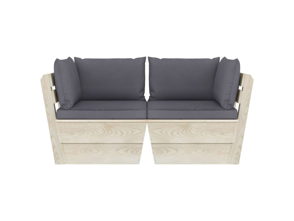 vidaXL 2-miestna záhradná pohovka z paliet+podložky, smrekové drevo