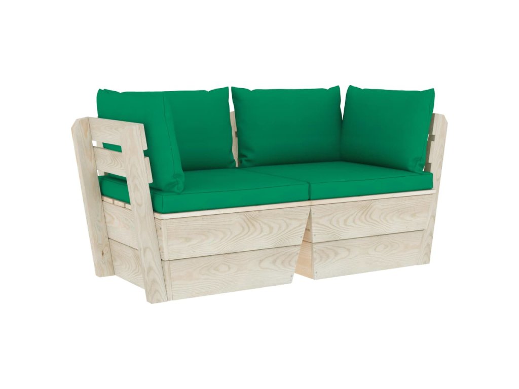 vidaXL 2-miestna záhradná pohovka z paliet+podložky, smrekové drevo