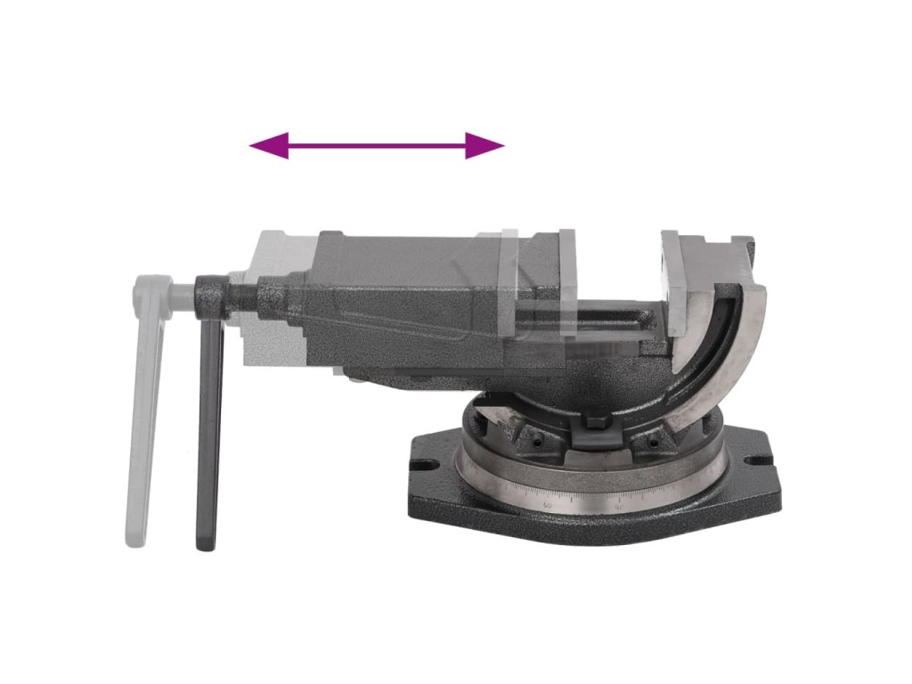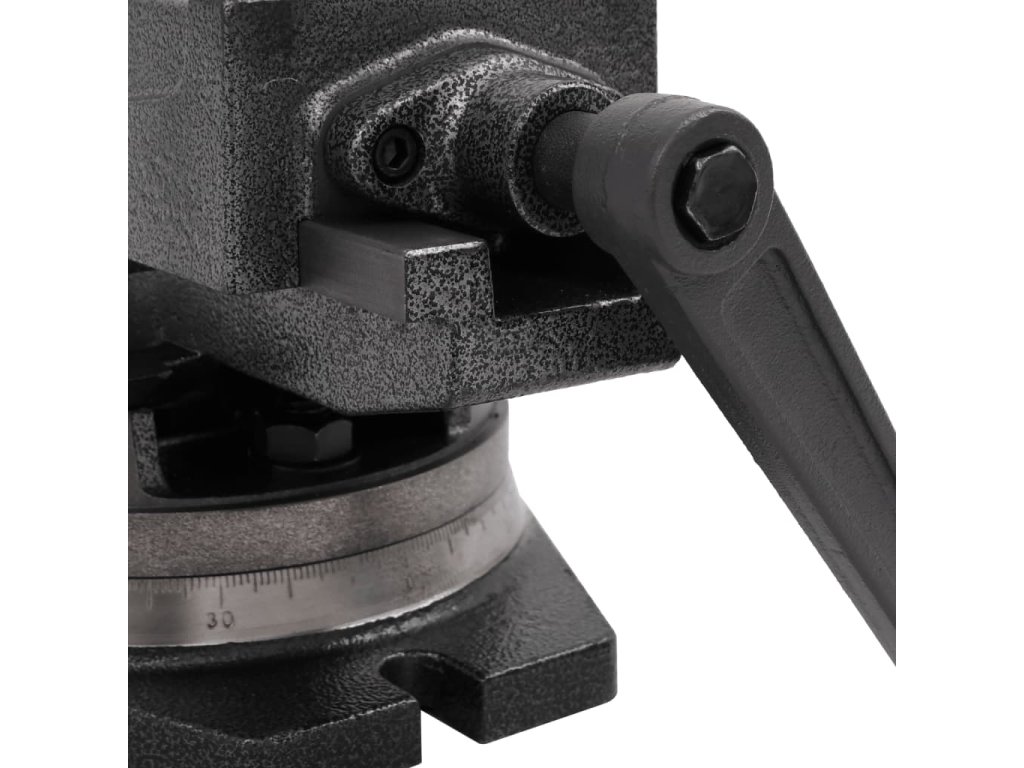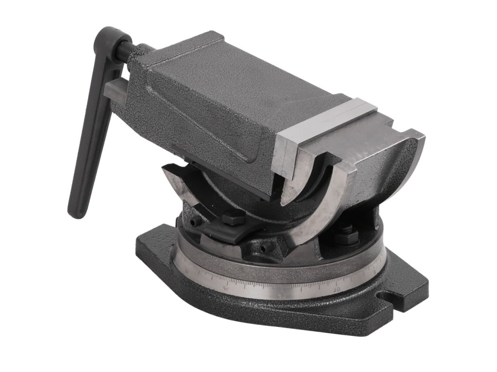 Dvojosý zverák s funkciou sklápania a otáčania a so šírkou čeľustí 100 mm je vyrobený z pevnej zliatiny. Má pevný závit pre ľahké a stabilné upínanie obrobkov.