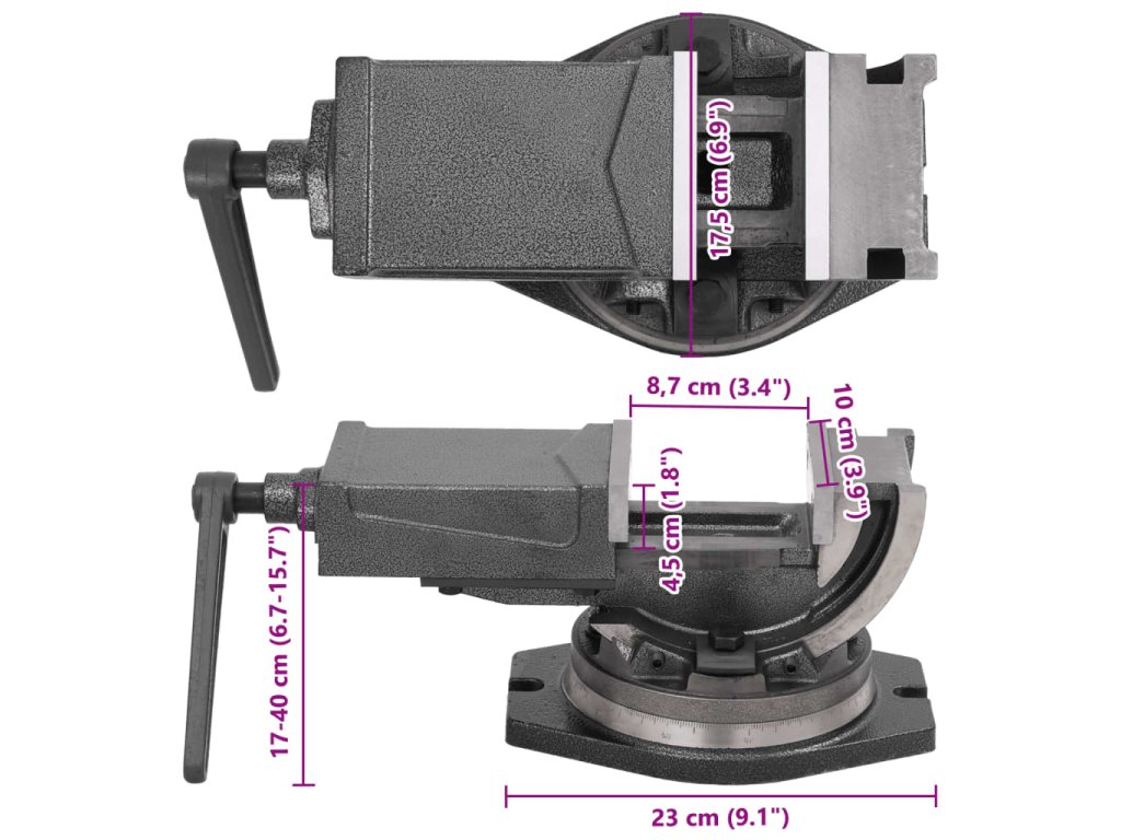 Tento nástroj má stabilnú základňu, ktorú môžete ľahko pripevniť k pracovnému stolu. Tento zverák je nevyhnutný pre kvalitné a presné vŕtanie, zváranie, frézovanie, rezanie a brúsenie.