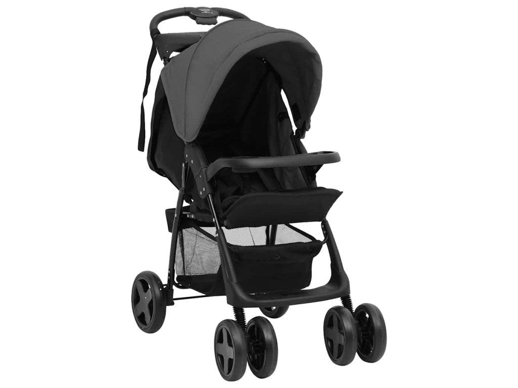 vidaXL 2-v-1 detský kočík tmavosivý a čierny oceľový