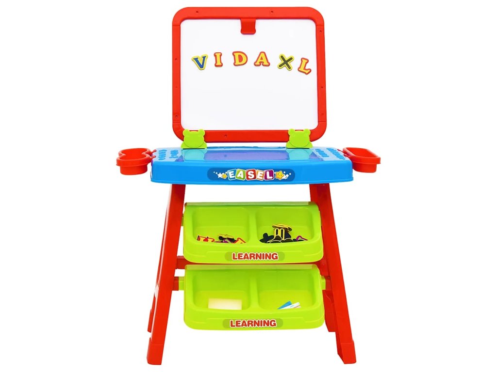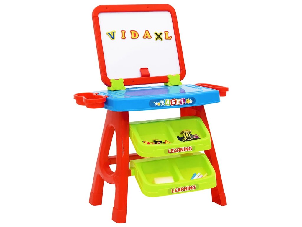 Obojstranný stojan je vybavený magnetickou tabuľou na jednej strane a tabuľou na písanie na druhej strane, čo vášmu dieťaťu poskytuje množstvo možností a hodiny tvorivej zábavy. Praktické priehradky pod písacím stolom umožňujú deťom ľahký prístup k písmenám, pastelkám, kriede alebo čomukoľvek inému. Môžete do nich aj pekne uložiť učebné predmety vášho dieťaťa. Navyše poskytuje dostatok miesta na stole na kreslenie alebo písanie na papier.