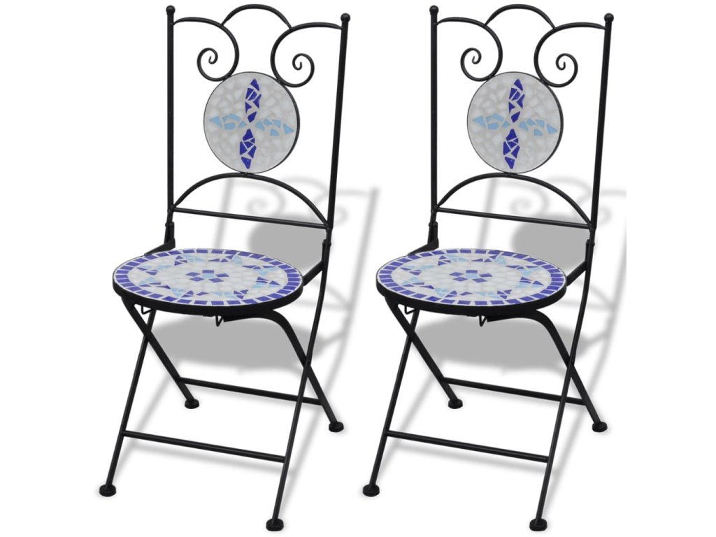 vidaXL 3-dielna bistro súprava, keramické dlaždice, modro biela