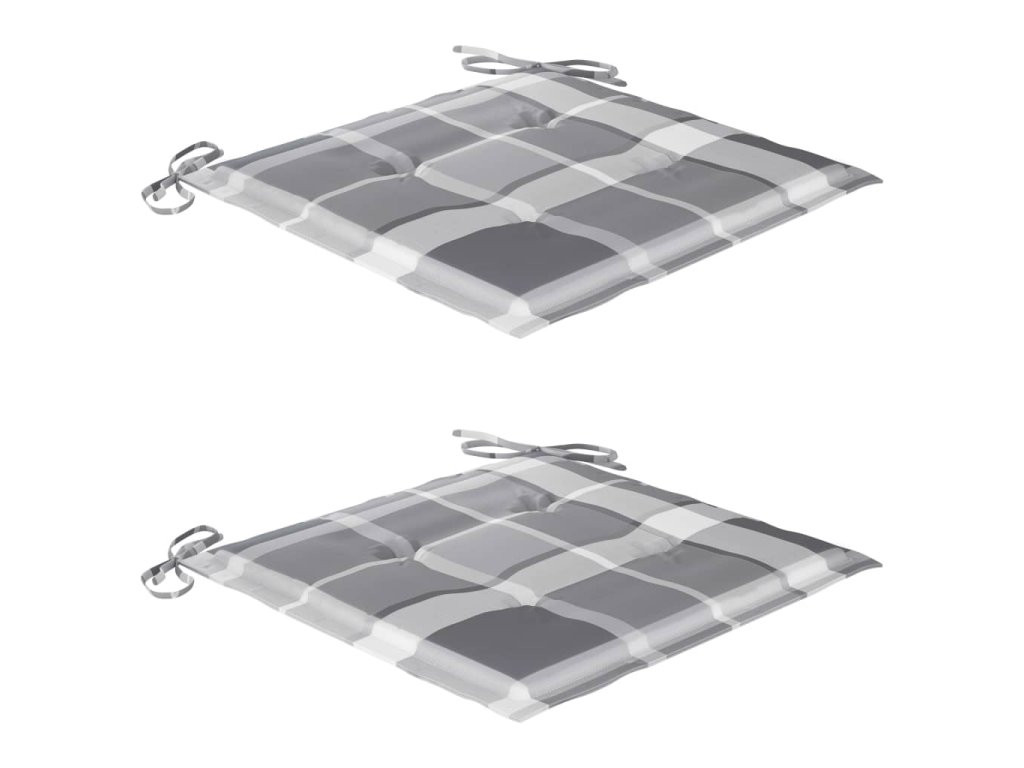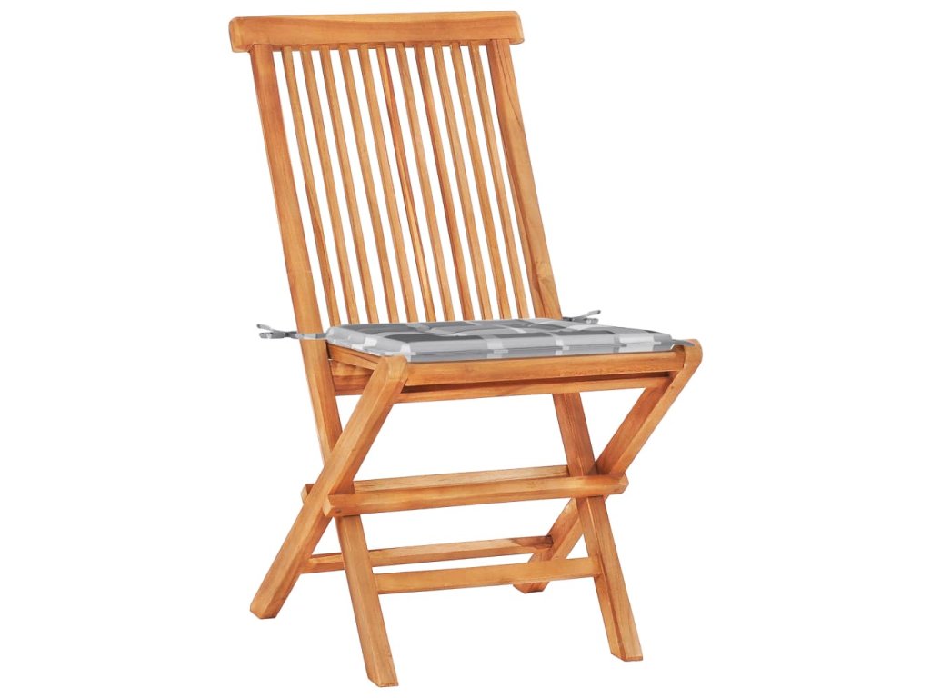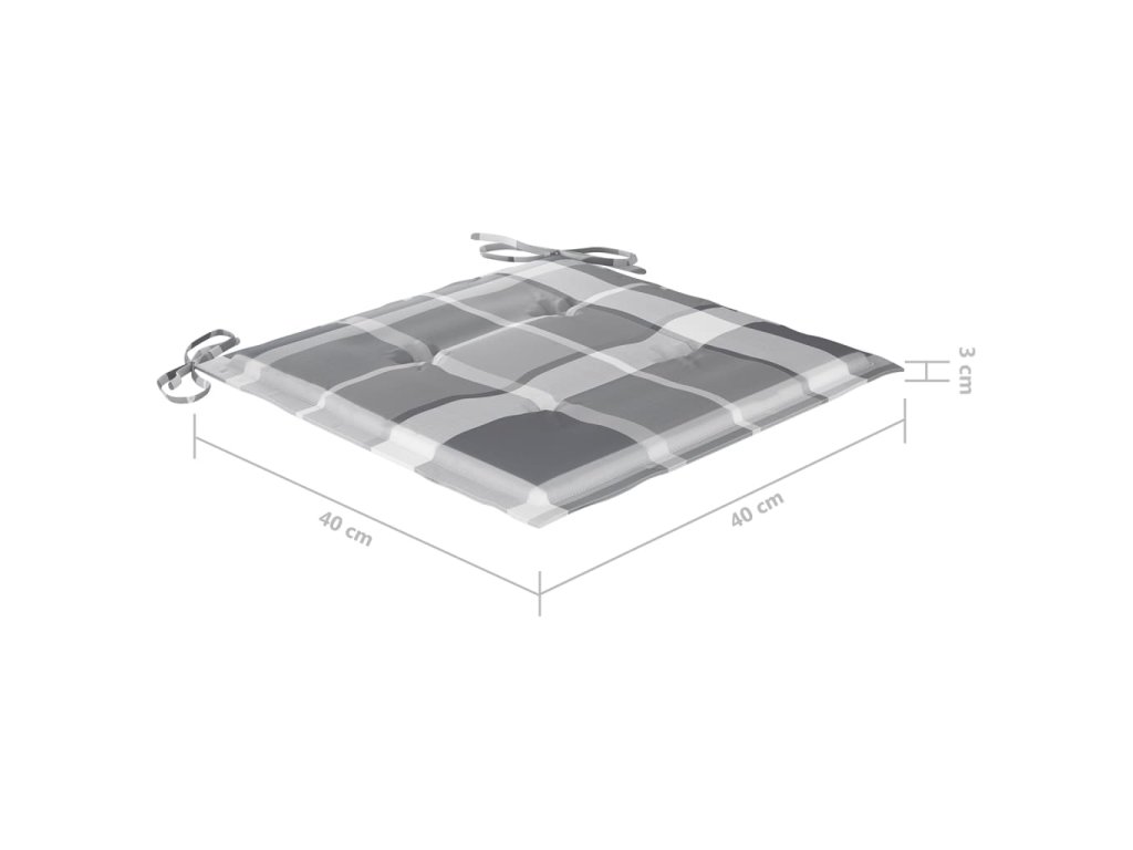 vidaXL 3-dielna bistro súprava, sivé kockované podložky, tíkový masív