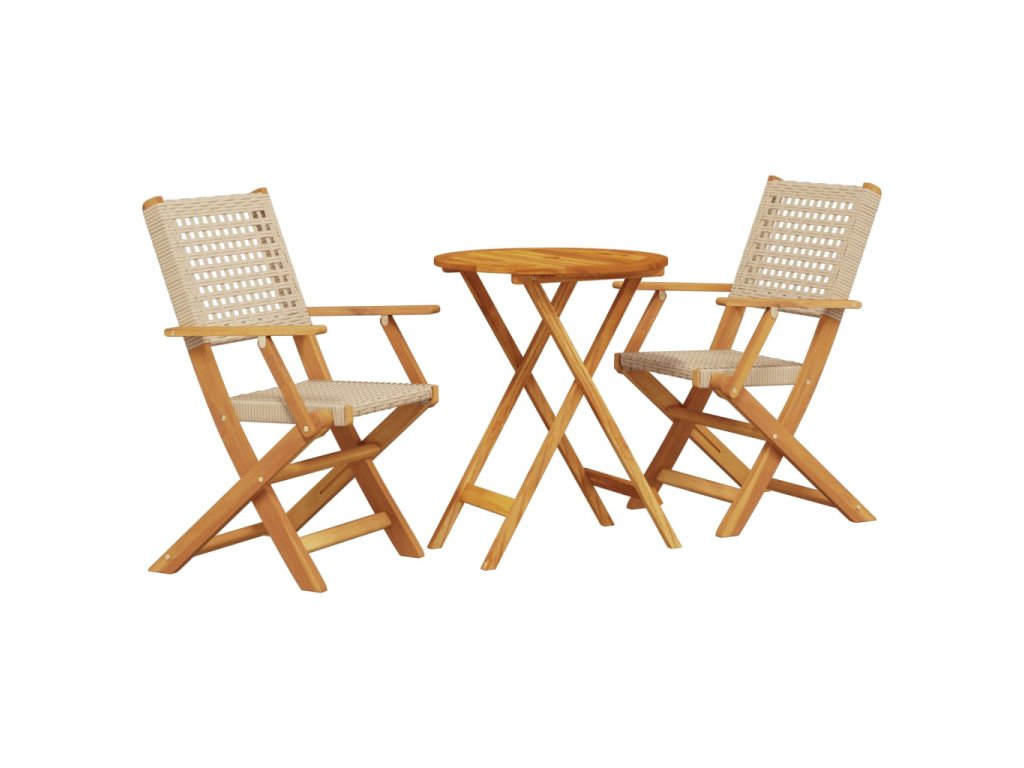 vidaXL 3-dielna bistro súprava béžová Polyratan+drevený masív