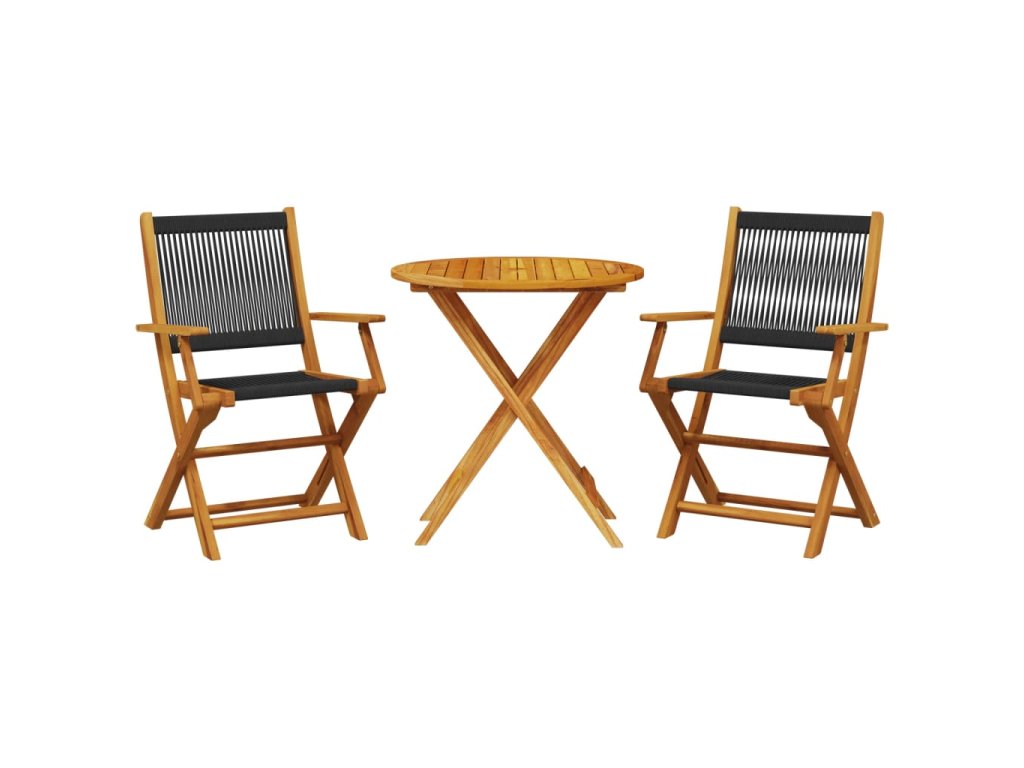 vidaXL 3-dielna bistro súprava čierna polypropylén+drevený masív