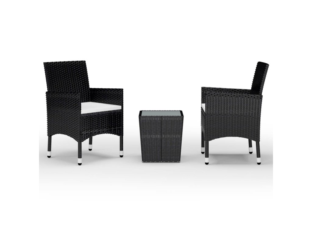 vidaXL 3-dielna bistro súprava čierna polyratan a tvrdené sklo