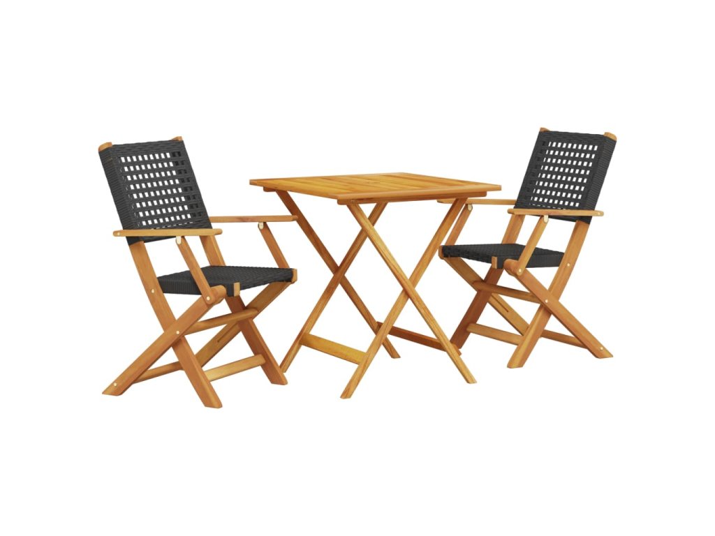 vidaXL 3-dielna bistro súprava čierna polyratan+drevený masív