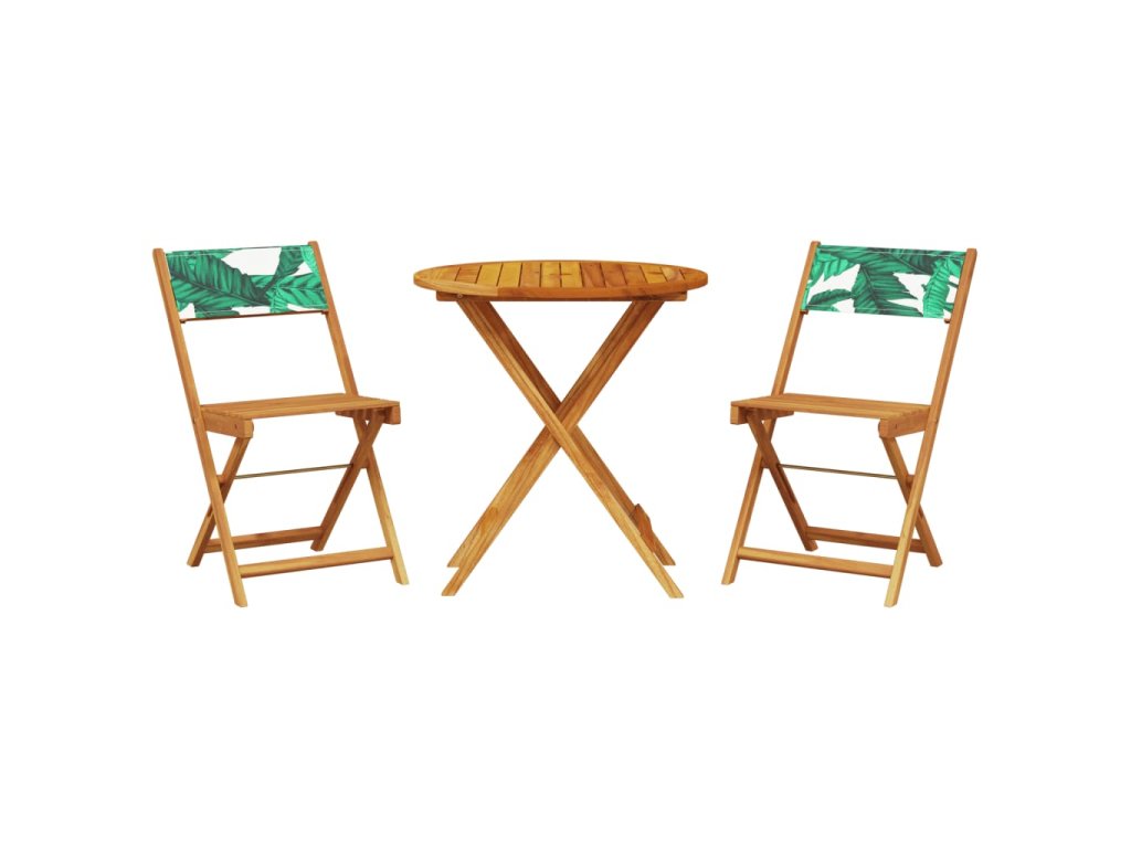 vidaXL 3-dielna bistro súprava listovým vzorom látka a masívne drevo