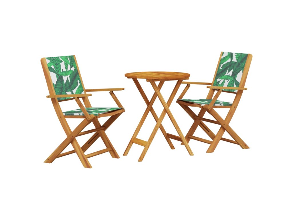 vidaXL 3-dielna bistro súprava listovým vzorom látka a masívne drevo