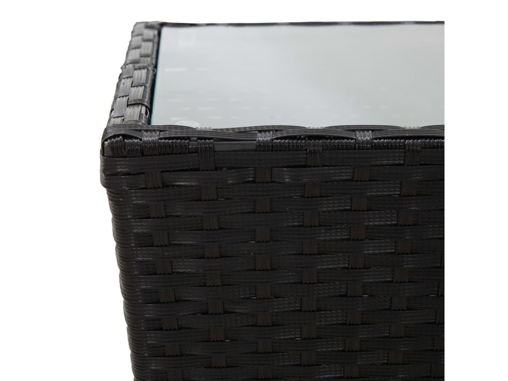 - Materiál: Ratan, oceľ, tkanina (100% polyester), tvrdené sklo, masívne akáciové drevo s olejovou úpravou