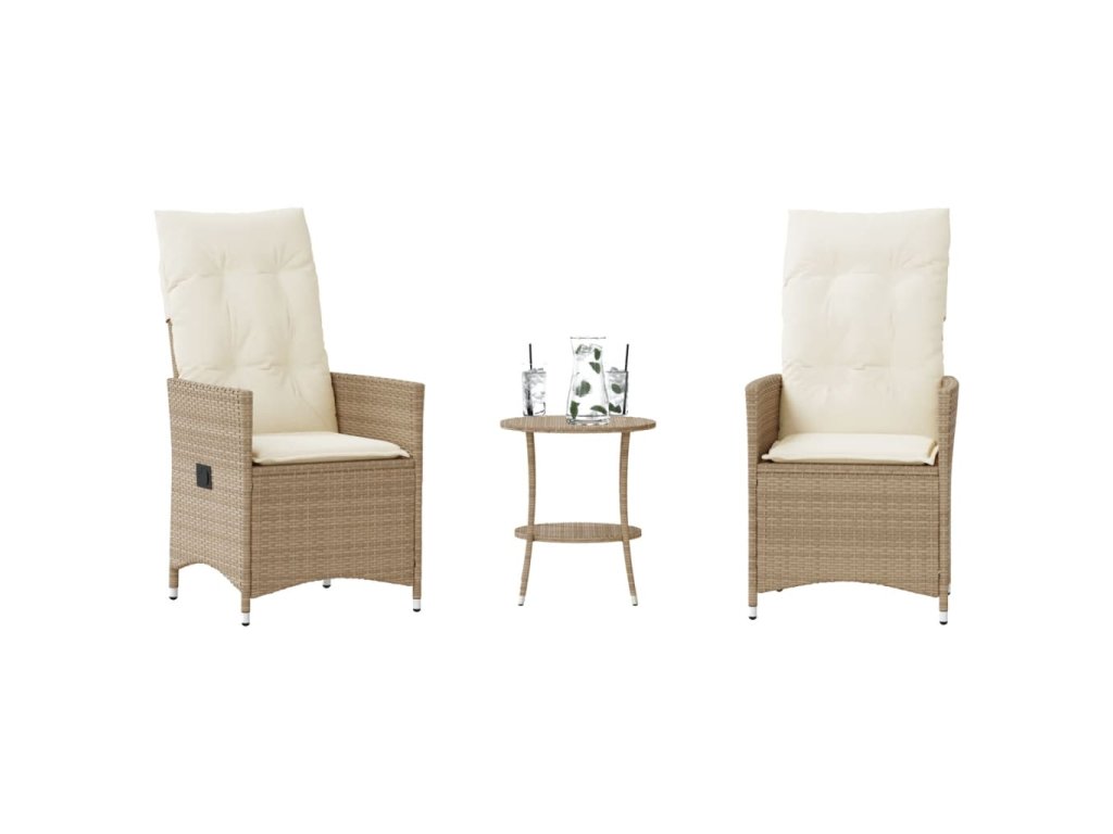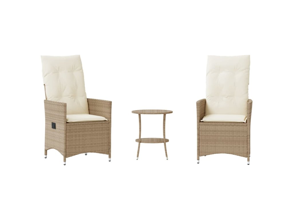 vidaXL 3-dielna bistro súprava s podložkami béžová polyratan