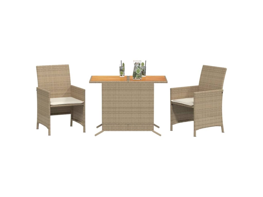 vidaXL 3-dielna bistro súprava s podložkami béžová polyratan