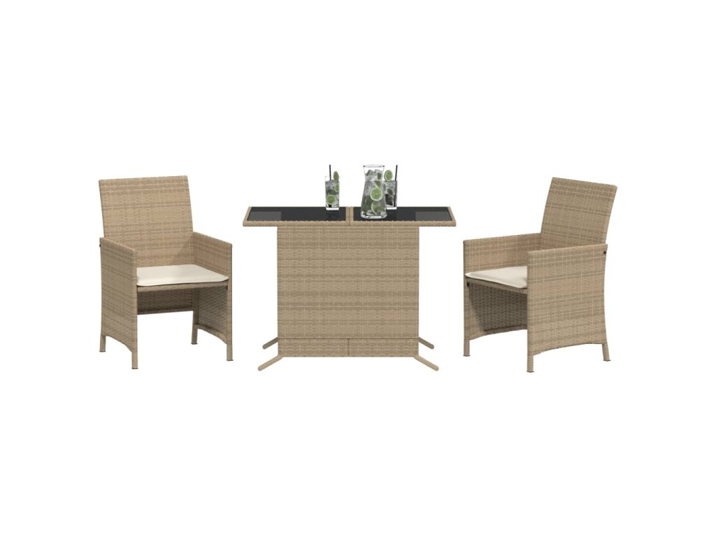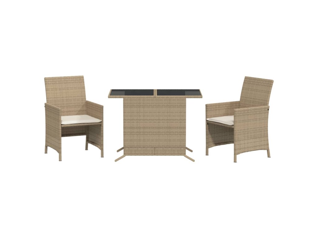vidaXL 3-dielna bistro súprava s podložkami béžová polyratan