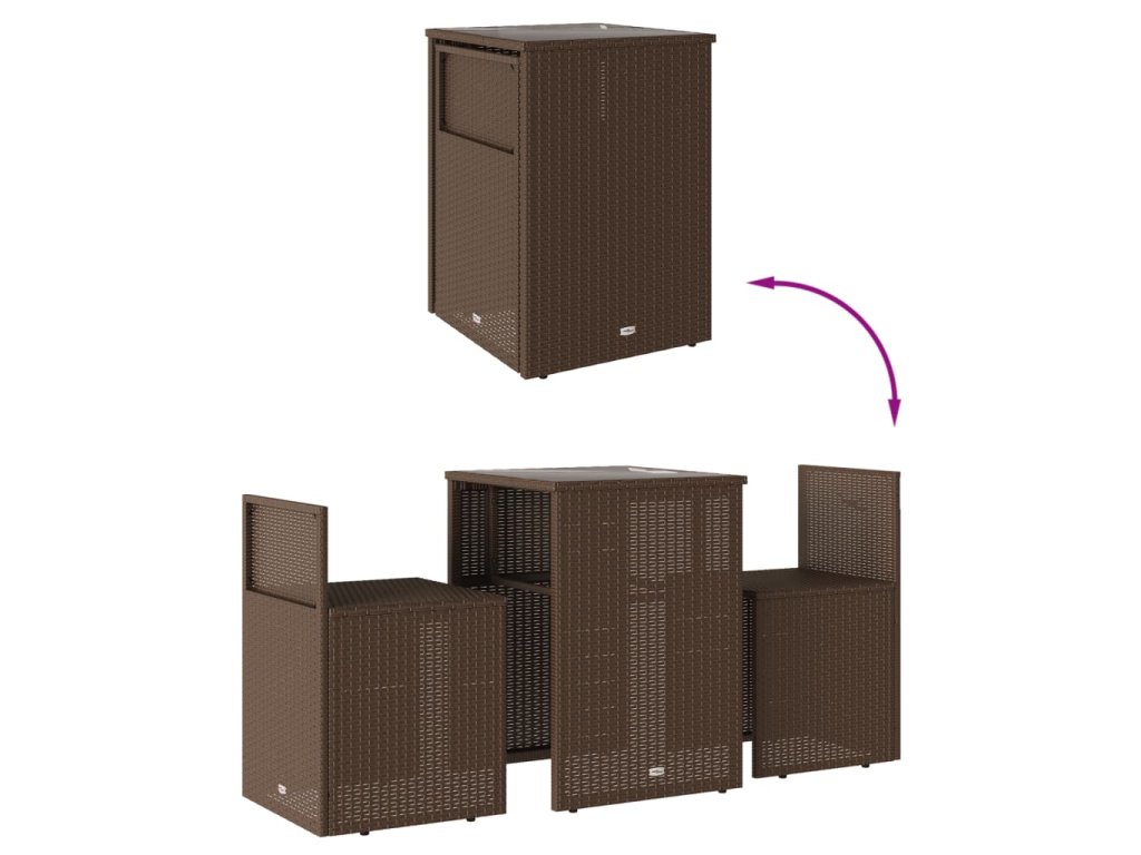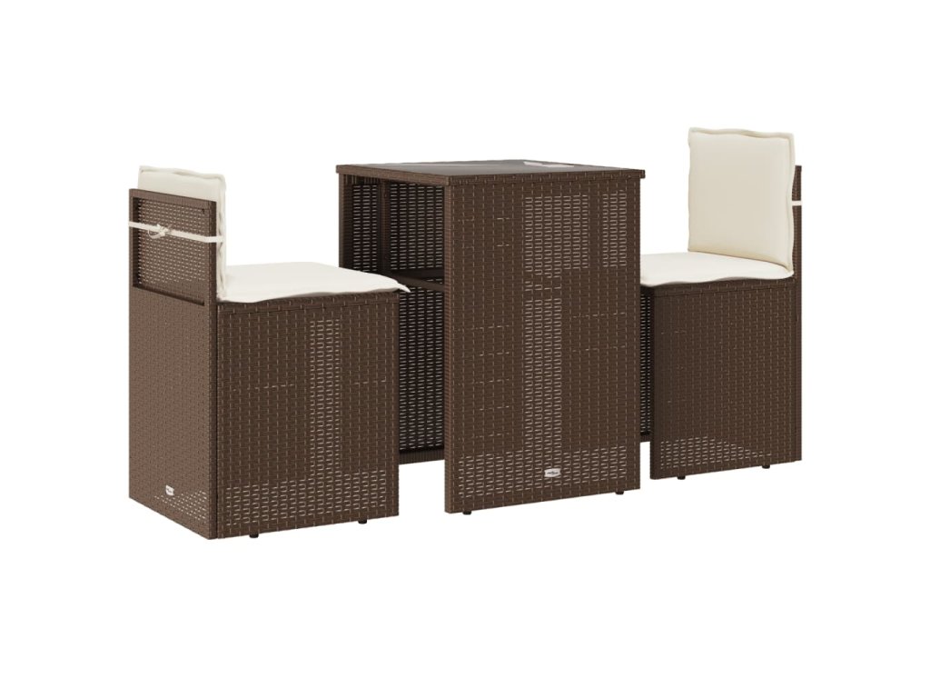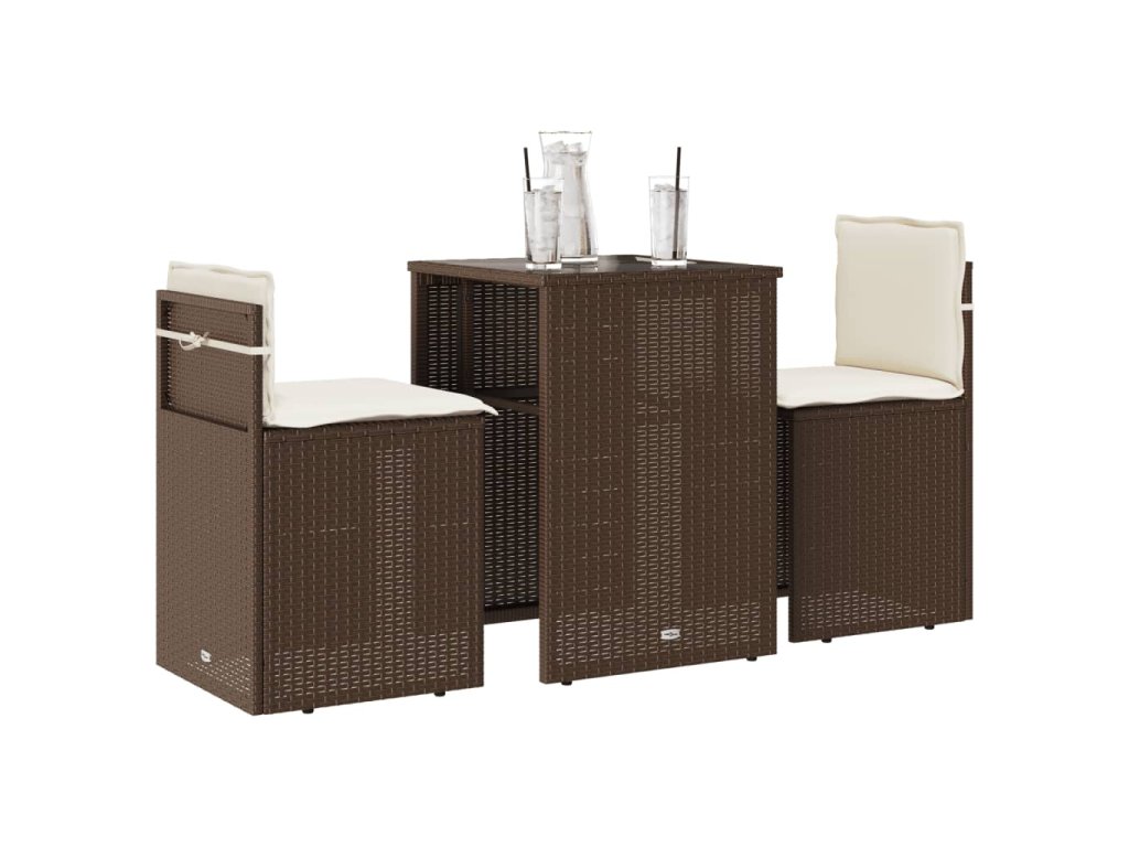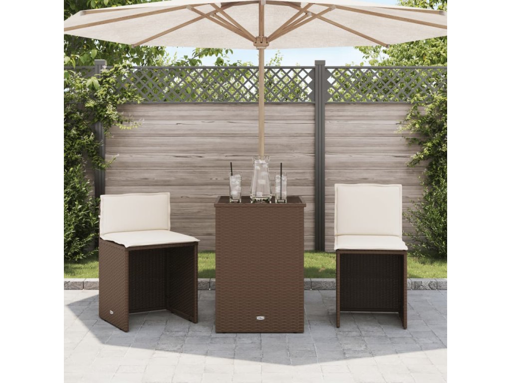 vidaXL 3-dielna bistro súprava s podložkami hnedá polyratan