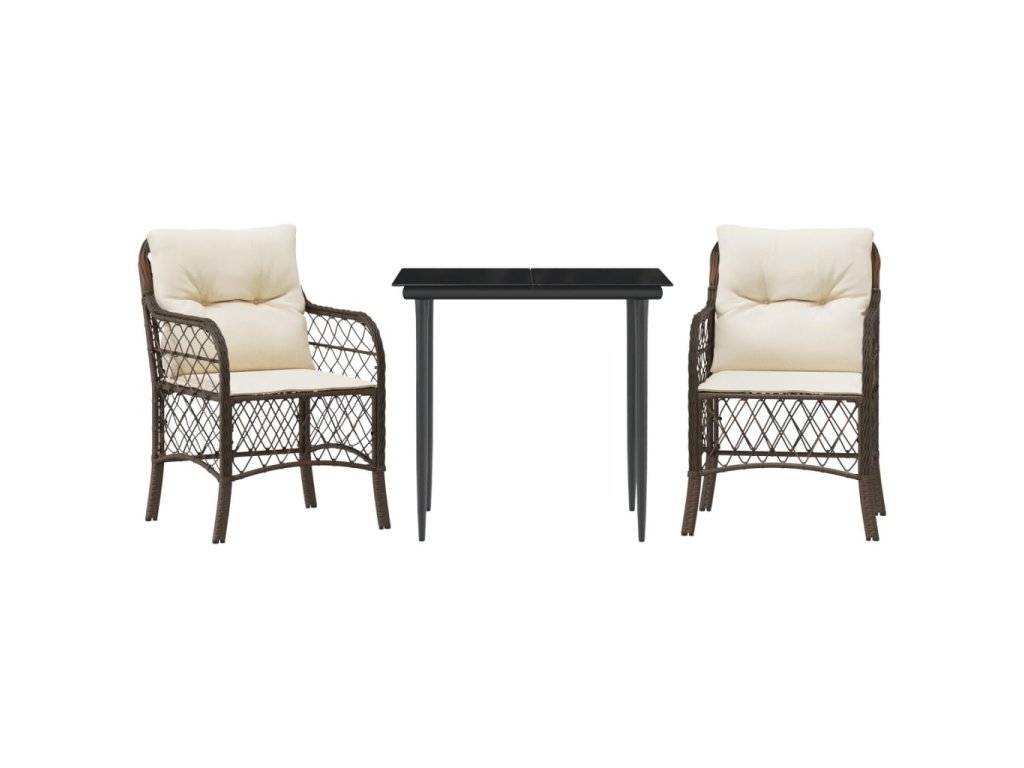 vidaXL 3-dielna bistro súprava s podložkami hnedá polyratan