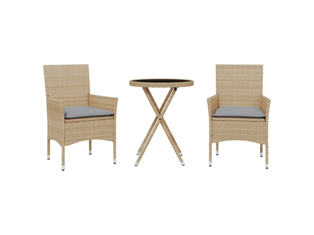 vidaXL 3-dielna bistro súprava s vaknúšmi béžová polyratan a sklo