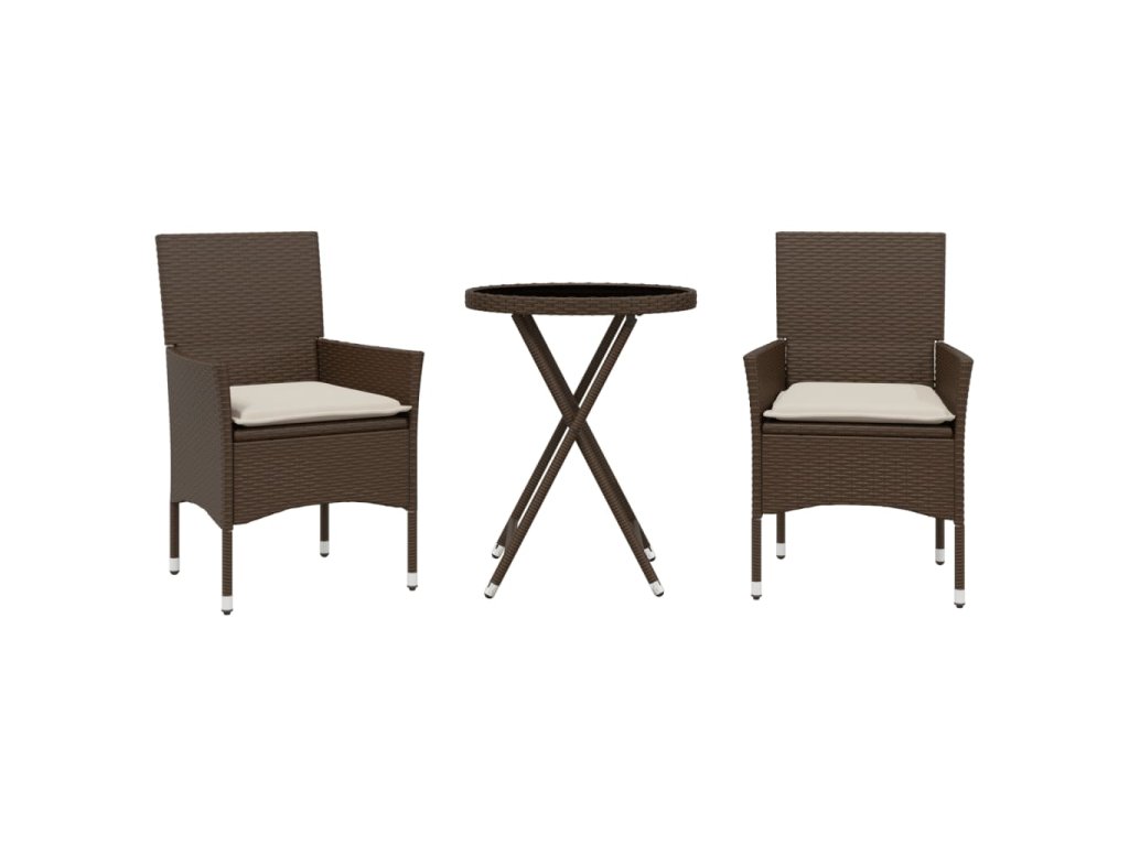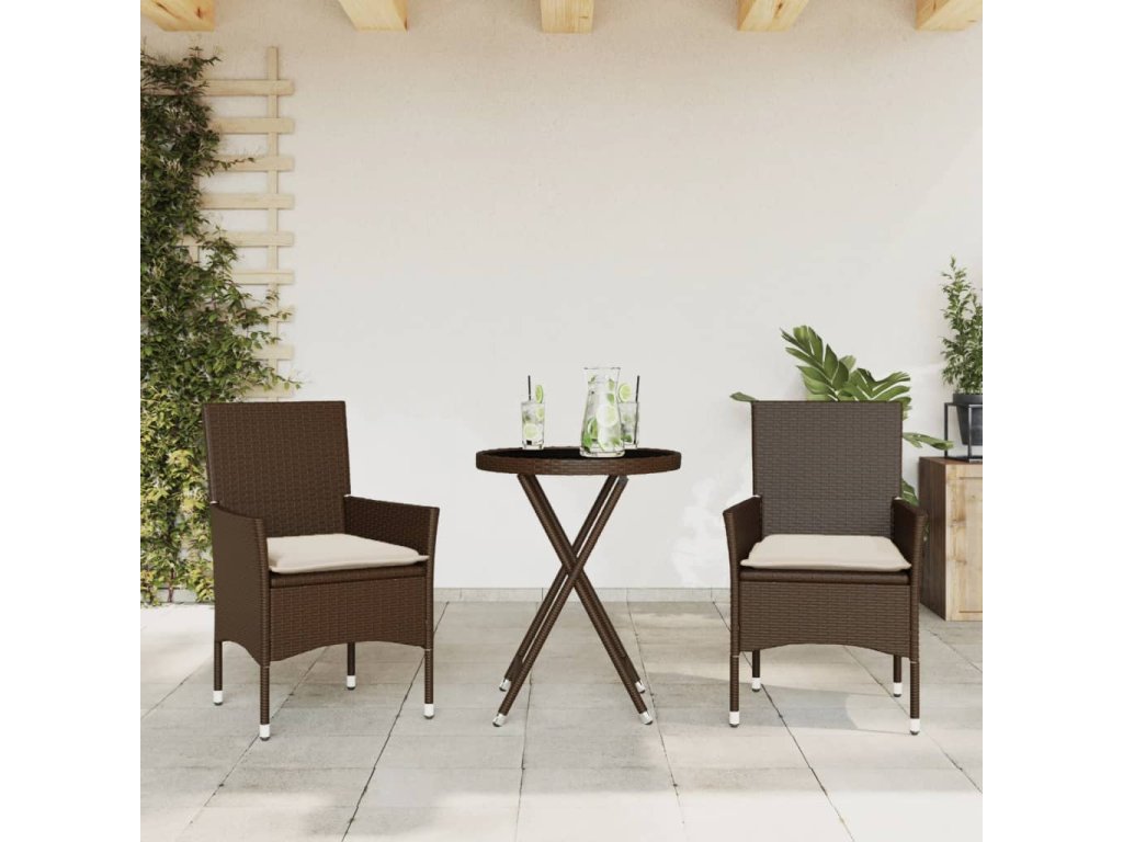 vidaXL 3-dielna bistro súprava s vaknúšmi hnedá polyratan a sklo