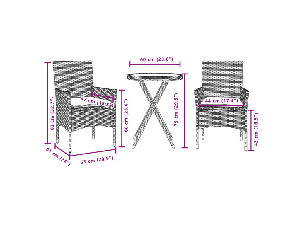 Vychutnajte si kávu alebo sa porozprávajte s rodinou a priateľmi v záhrade, na dvore alebo na balkóne s týmto pohodlným bistro setom!