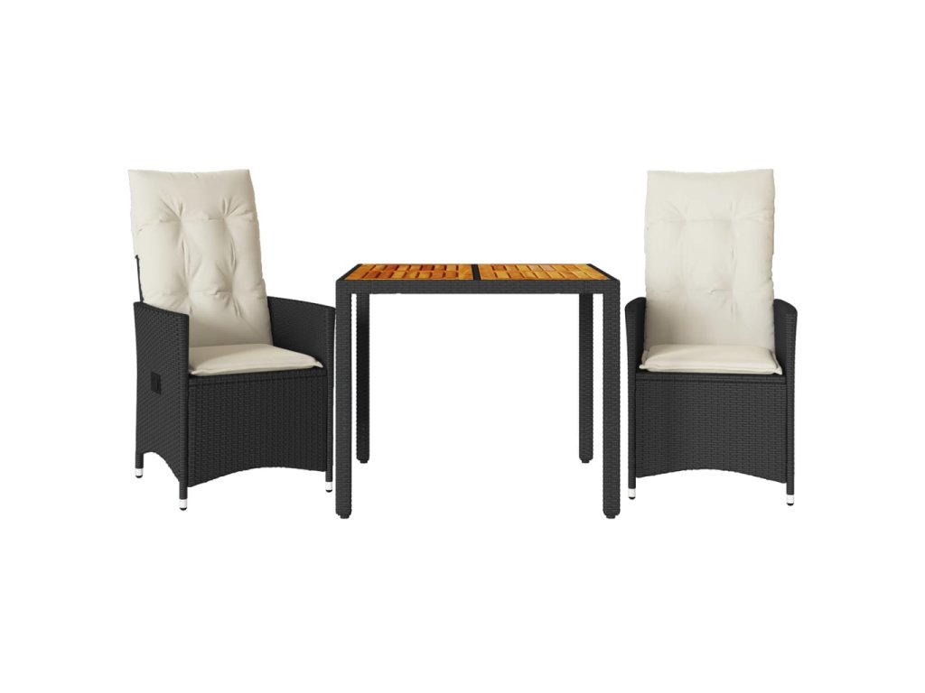 vidaXL 3-dielna bistro súprava s vankúšmi čierna polyrat a akácia