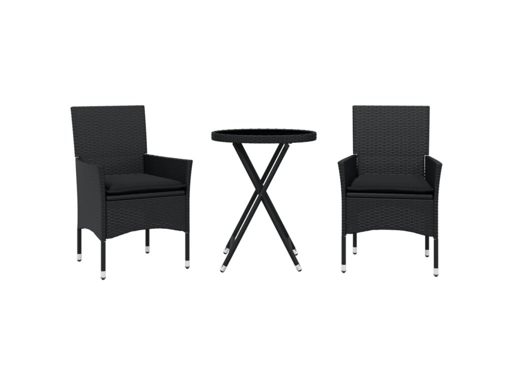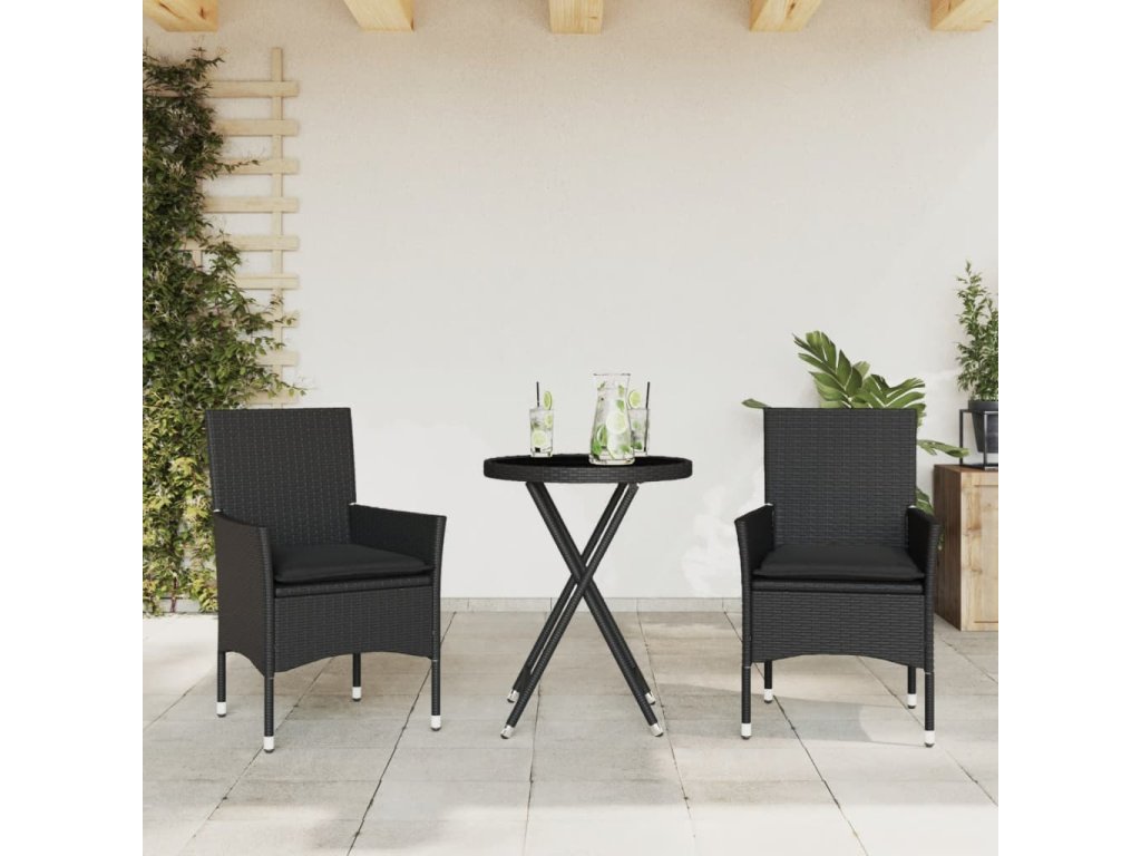 vidaXL 3-dielna bistro súprava s vankúšmi čierna polyratan a sklo